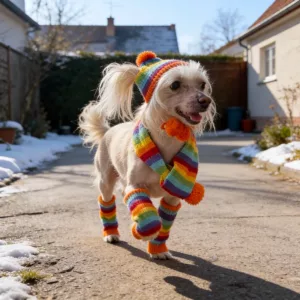 The stretchy yarn is gentle and comfy—my dog runs around and doesn’t try to pull it off. It keeps her warm on those long, chilly hikes in the woods.