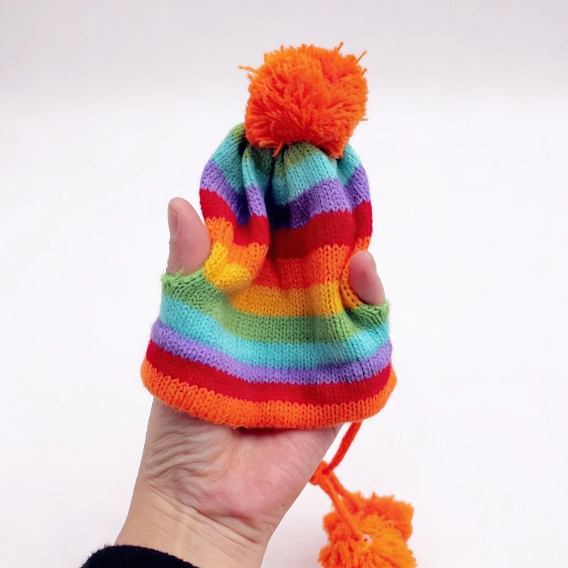 Bright stripes and pom-poms bring smiles wherever you go. Friends and family will love seeing your pet dressed up.