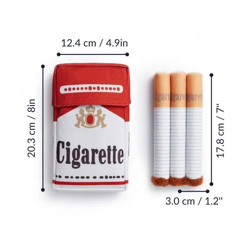Bought the cig set as a gag for my boyfriend’s dog , and now we both end up on the floor laughing while the dog shows off his new stash.