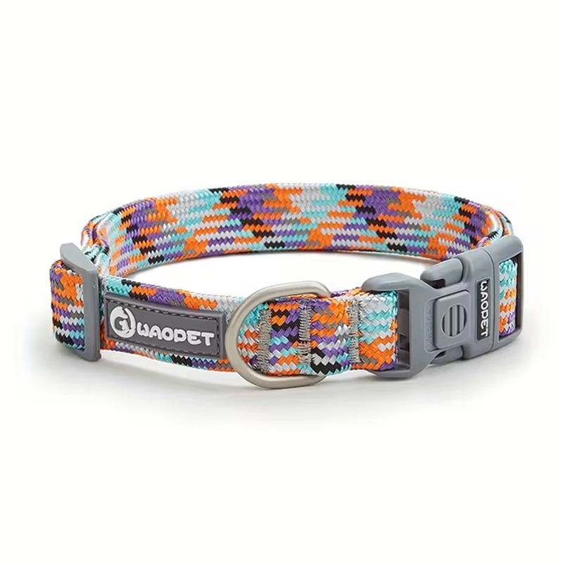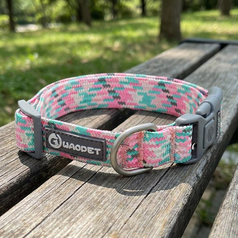My dog’s always running around the backyard, rolling in grass and mud, but this collar stays in place and still looks bright after washing.