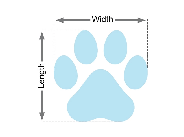 • 2. Mark the widest and longest parts of the paw, then use a ruler to measure these distances.