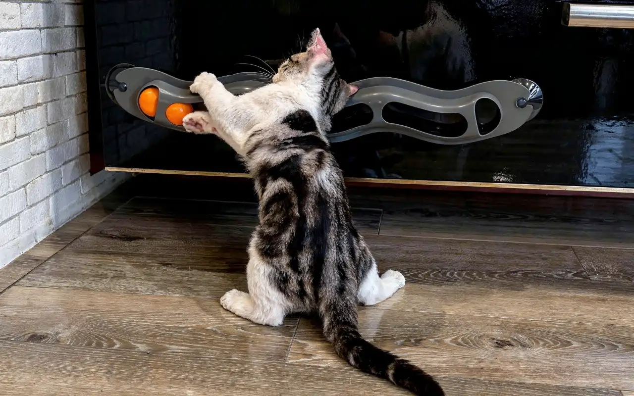 Attach it to glass, tile, or painted steel for tidy play. Keep floors clear while your pet enjoys hours of excitement.