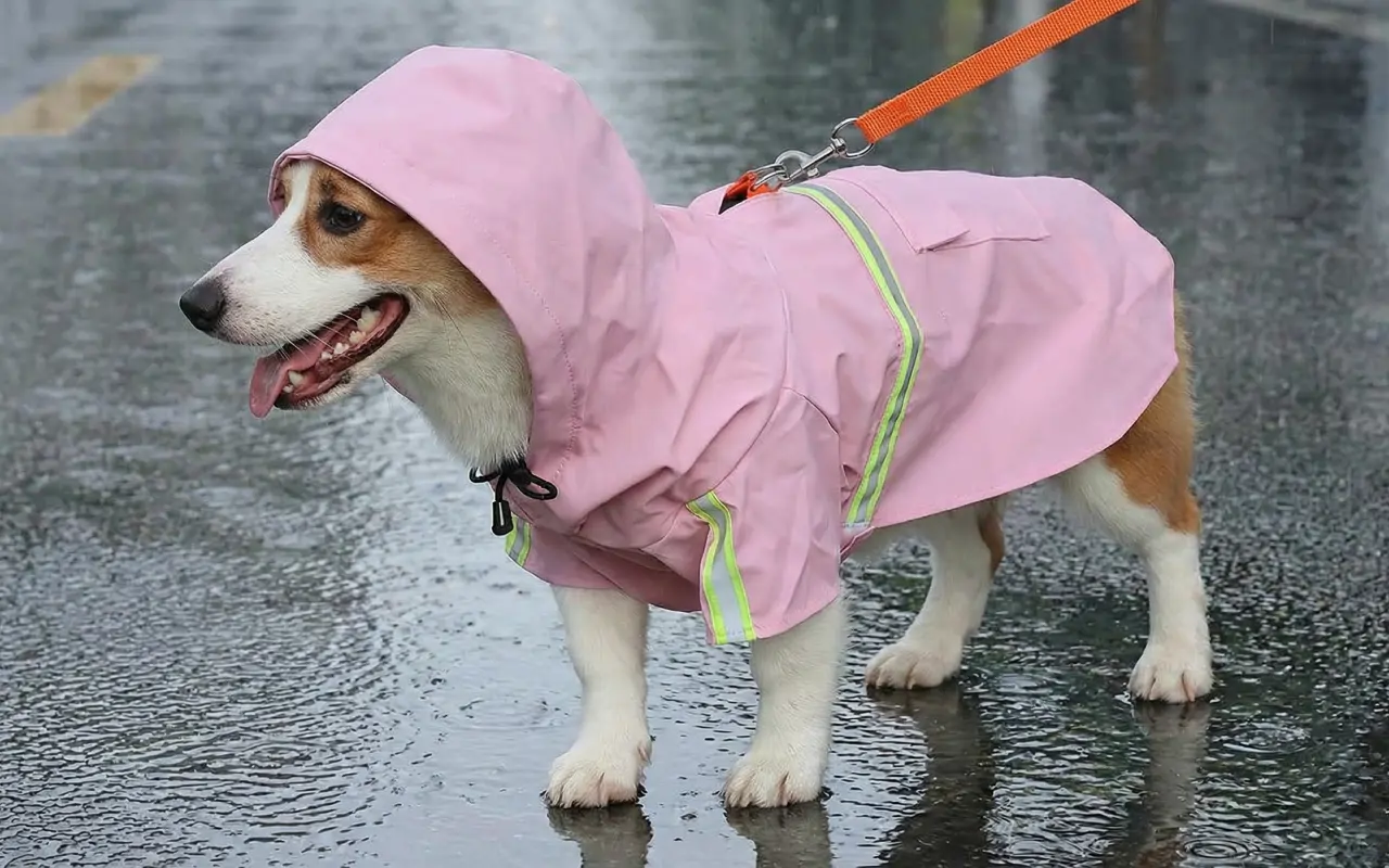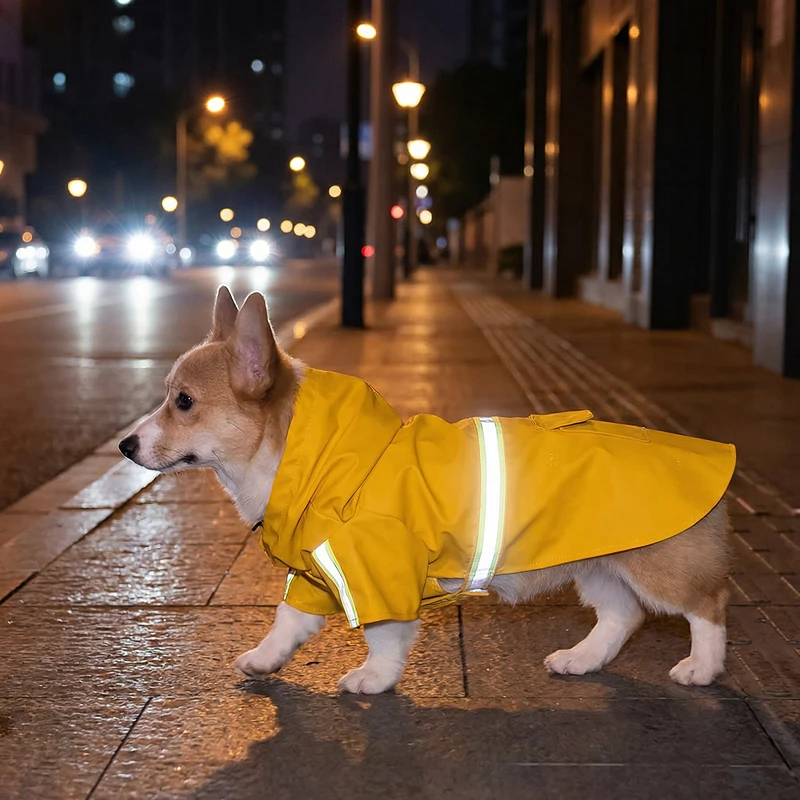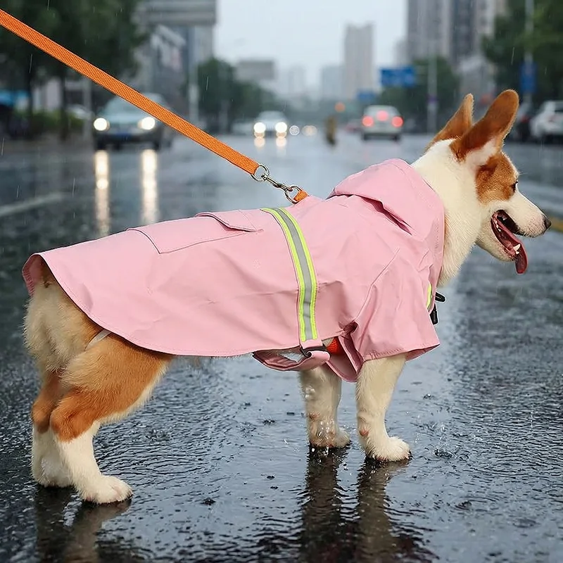 Bought this raincoat for my dog and I’m impressed. It keeps him dry, fits well, and the reflective stripes glow like crazy at night.