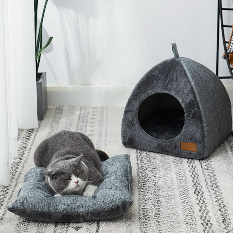 The triangular shape creates privacy, reducing stress and anxiety fast. Cats feel protected inside, enjoying quiet moments whenever needed.