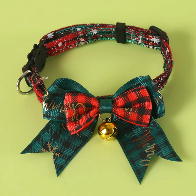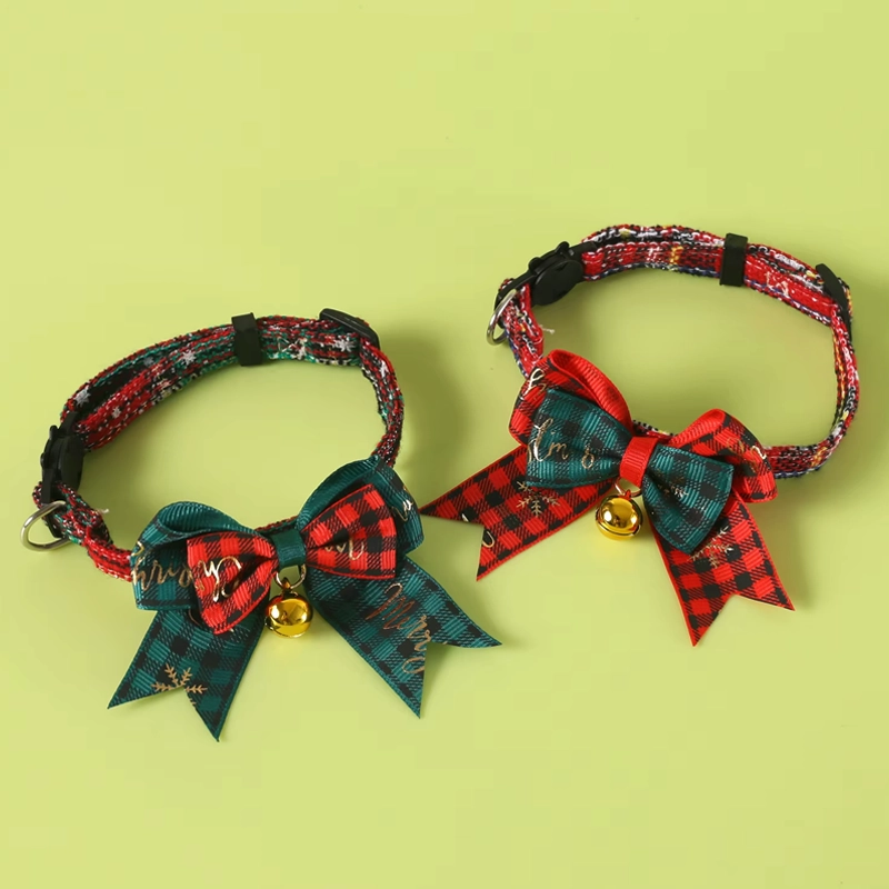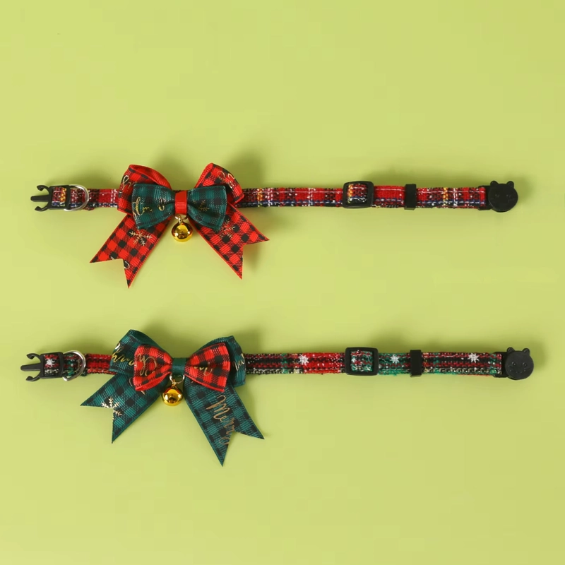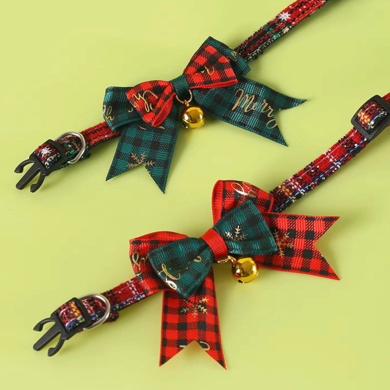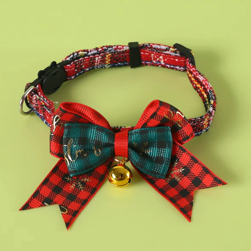 My cat looks extra cute this Christmas with her new bow! The plaid pattern is super fun, and the golden bell jingles when she runs around.