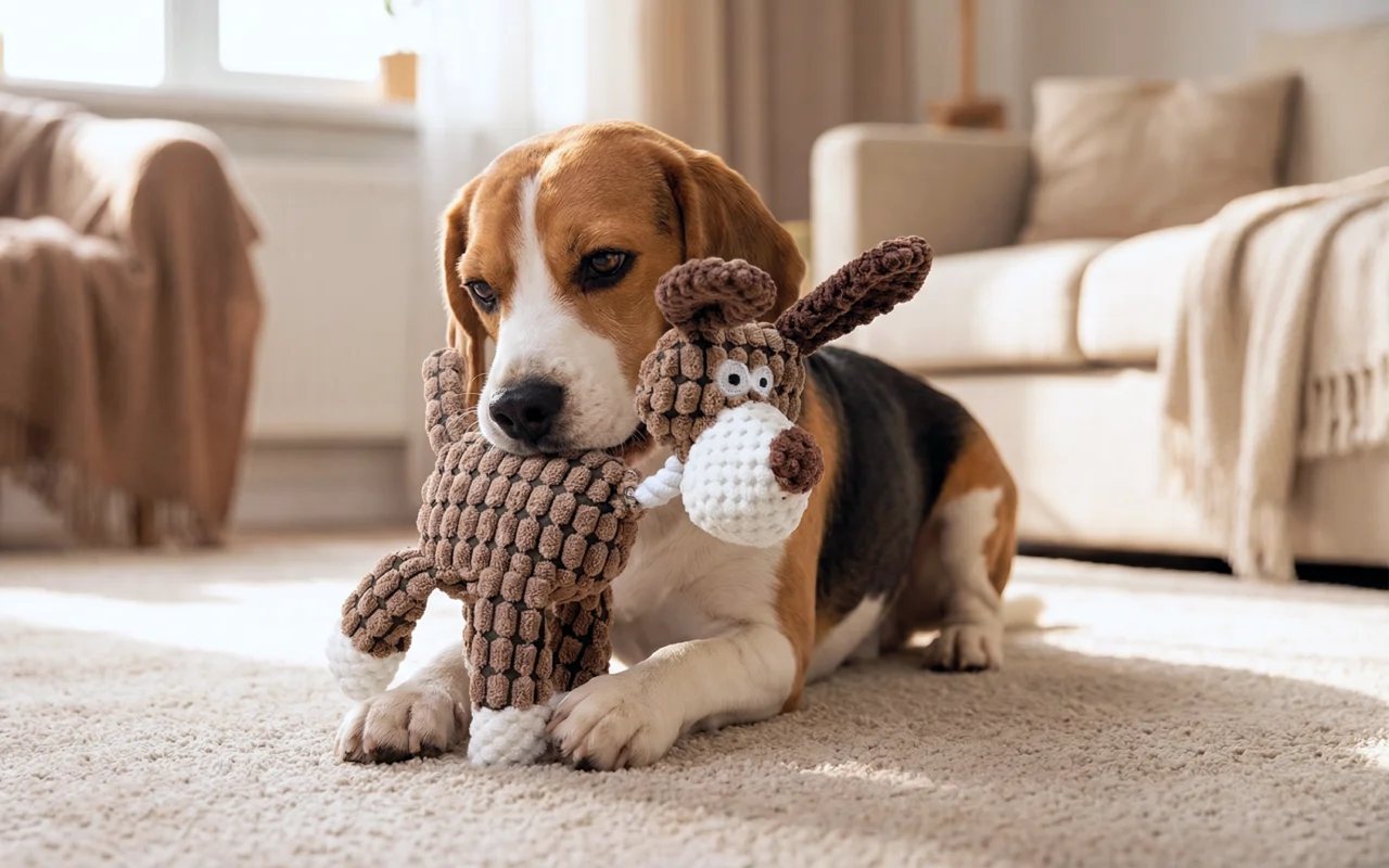 Interactive squeaks help calm nerves after busy outings. Playful activity reduces boredom, supporting a peaceful home.