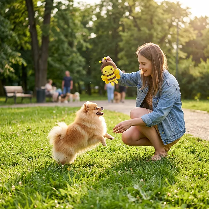 My puppy can’t get enough of her bee toy! It’s super soft and holds up to lots of chewing. Great for indoor playtime on rainy days.