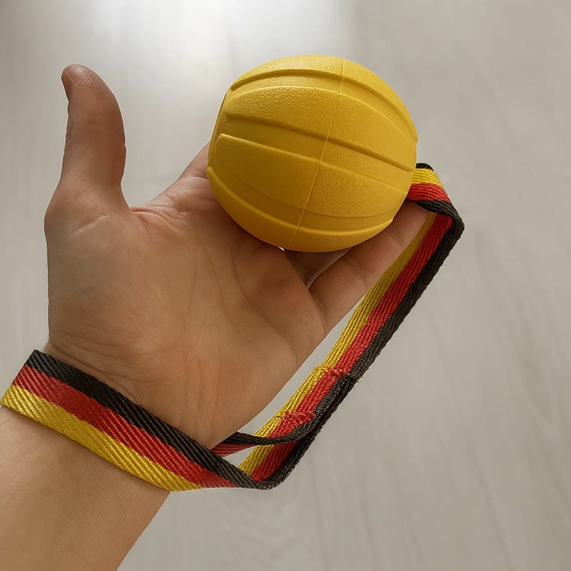 My dog loves catching this ball mid-air. She looks forward to playtime every single day.