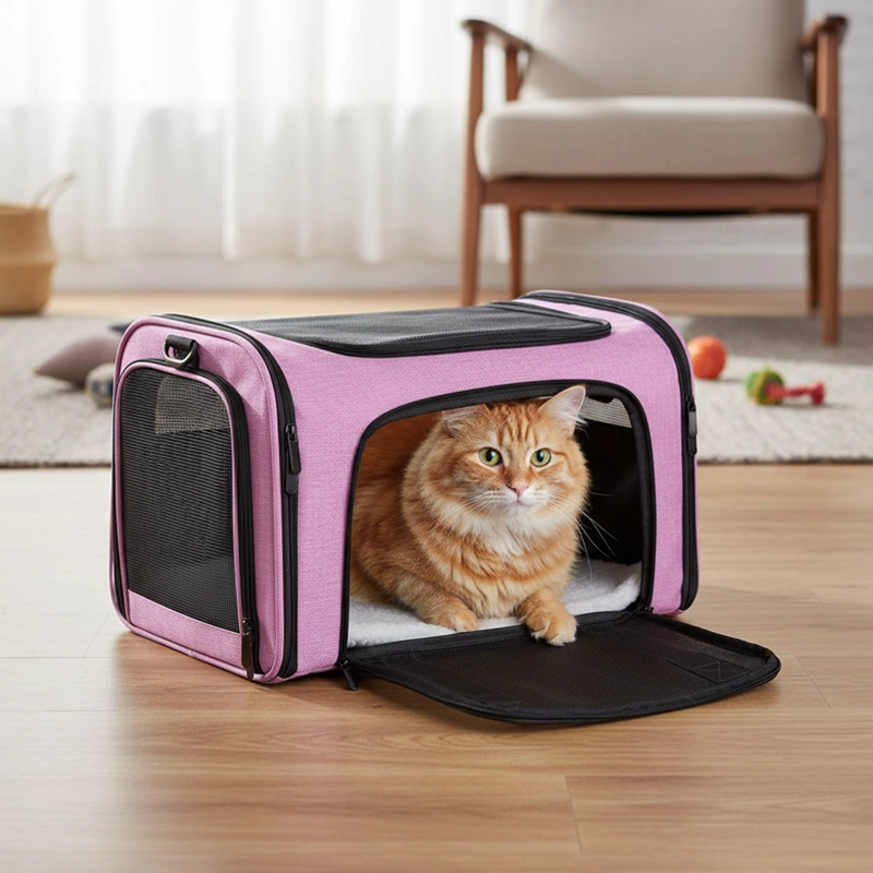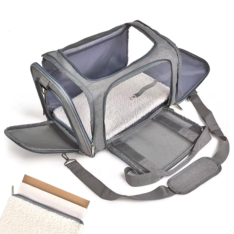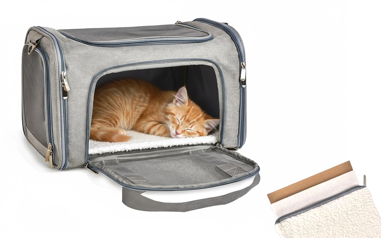 A removable fleece pad creates a gentle bed for peaceful naps. The mesh panels allow fresh air inside, helping pets relax during travel.