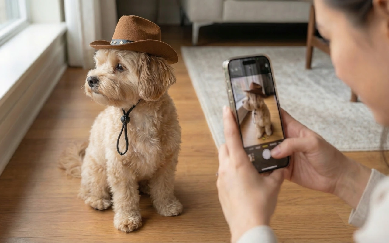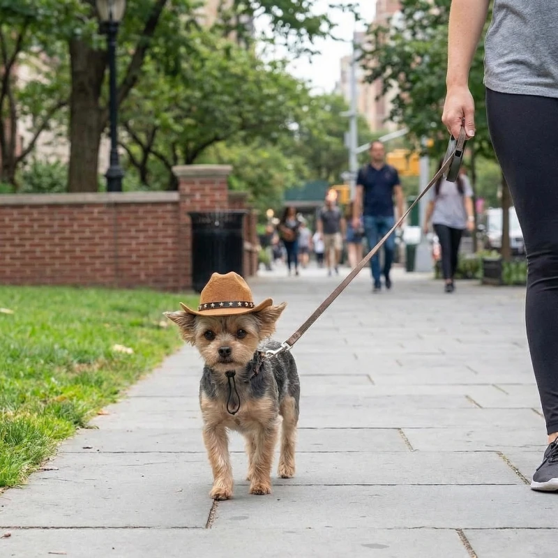 Bought this tiny cowboy hat for my dog, and now every evening walk turns into a little parade. He struts around and people keep laughing.