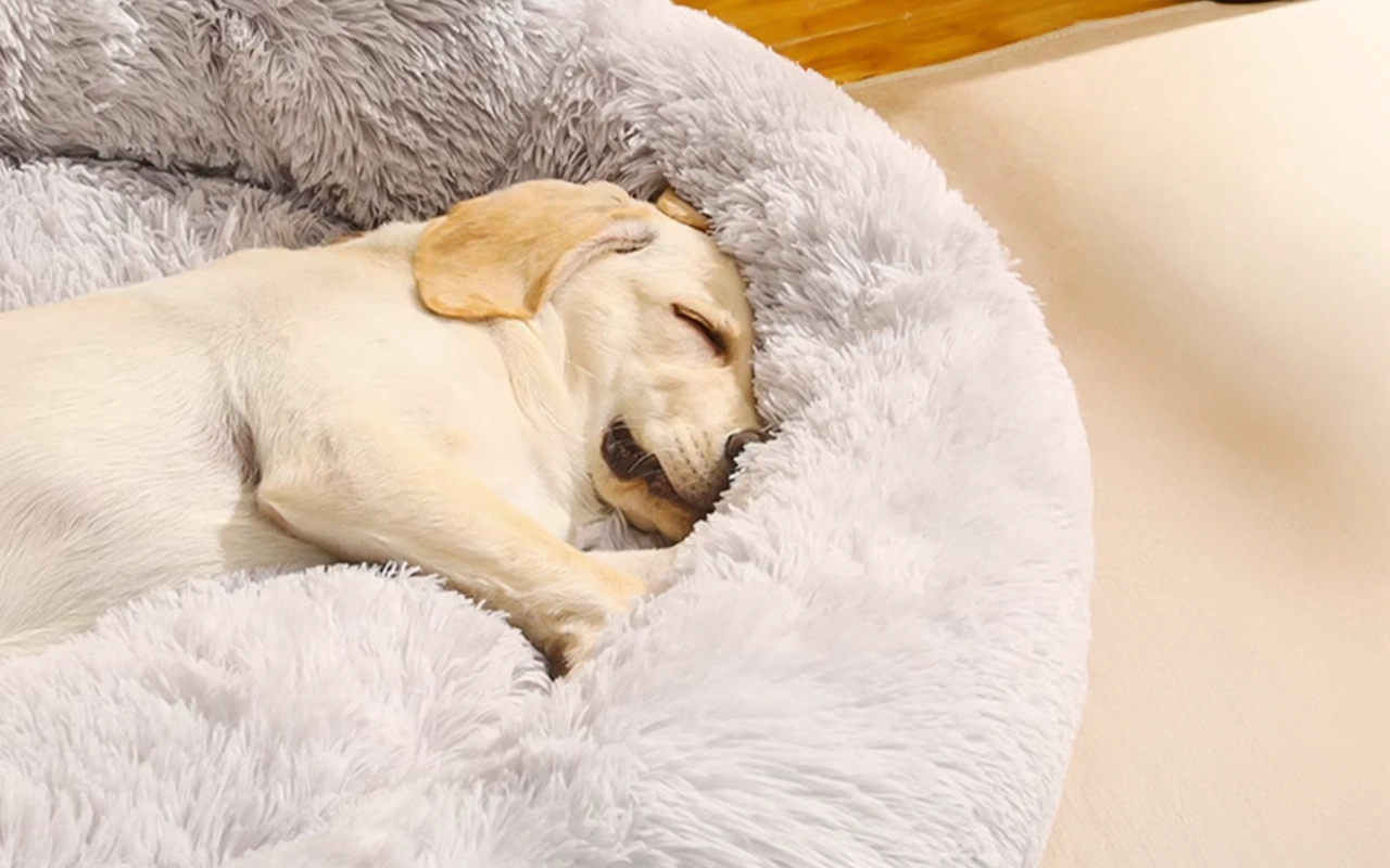 fluffy dog bed, dog bed with high sides, calming dog bed, anti anxiety dog bed, round fluffy dog bed, large fluffy dog bed
