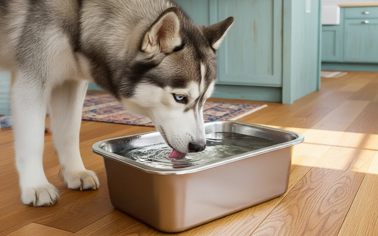 Our German Shepherd drinks a ton and this keeps her satisfied. I like how it looks on the kitchen floor, neat and shiny.