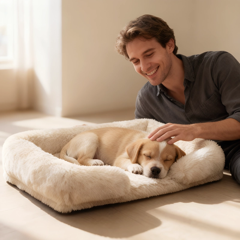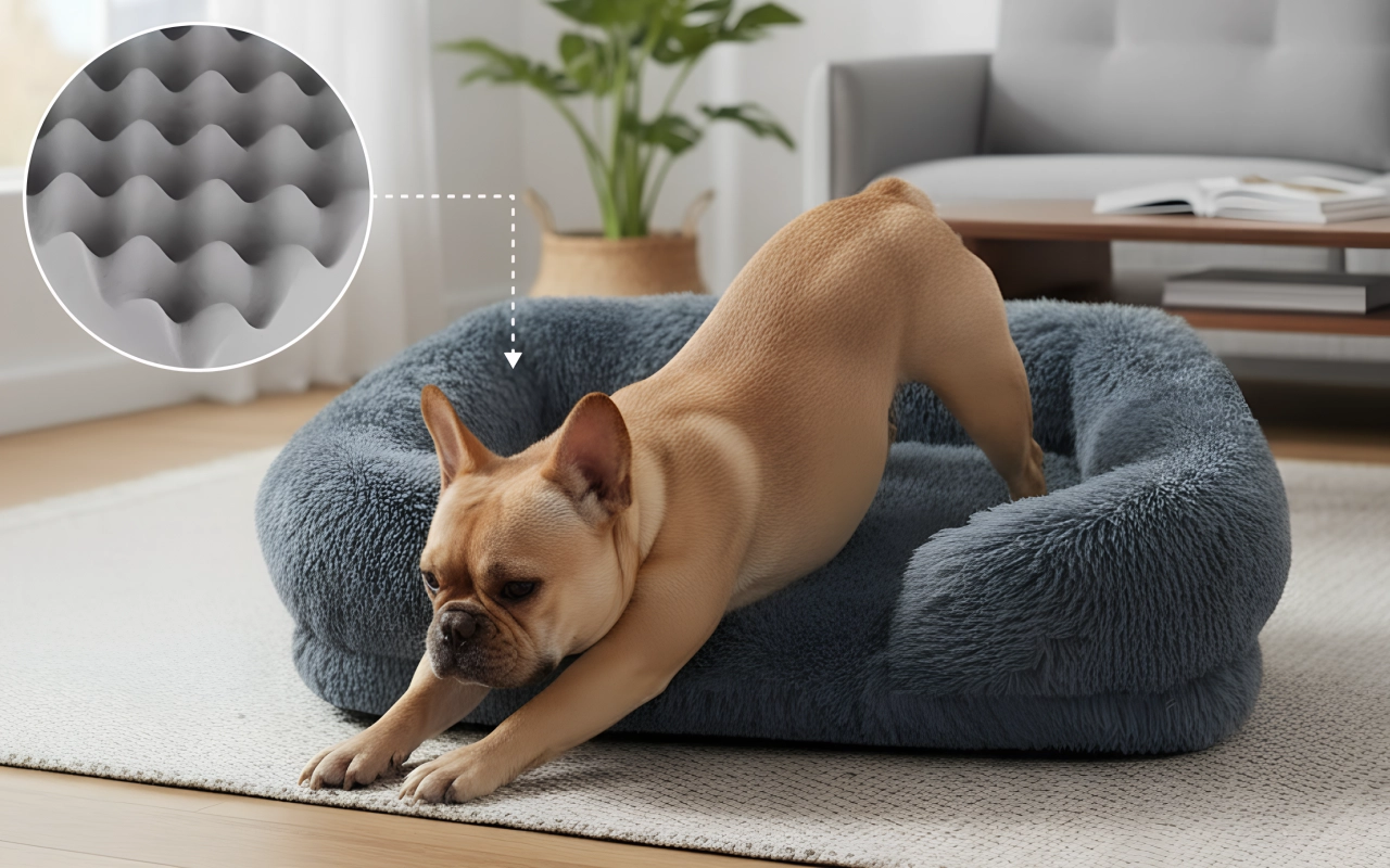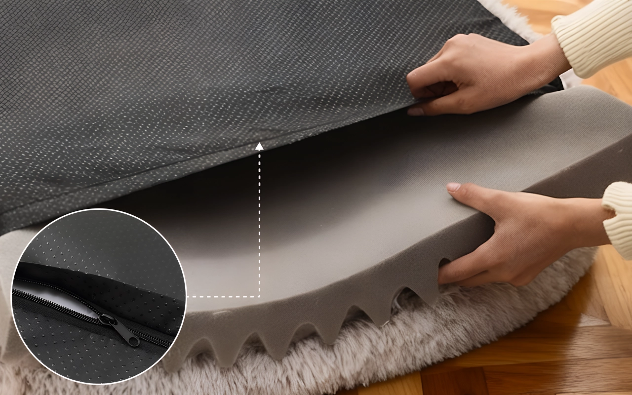 The soft cushion helps my rescue dog nap peacefully even around guests. She no longer hides, just curls up in her comfy corner. Cleaning is a breeze too.