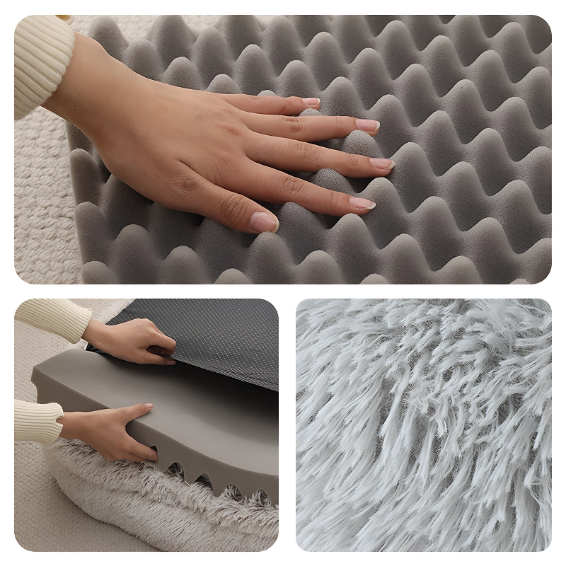 This fluffy spot is super cozy for our pup. She snuggles up tightly against the raised edges. Stays clean much longer than old beds we tried.