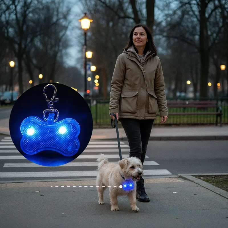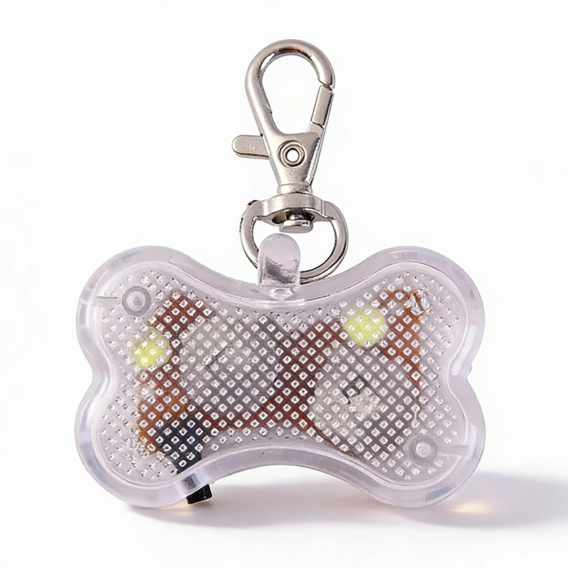This bone charm is awesome for our evening walks. My dog stays visible, and changing the light color is super easy. Love the clip—never falls off!