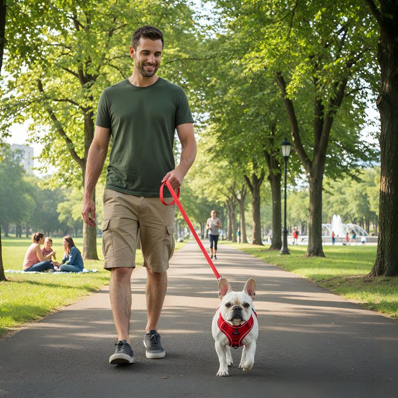 Every walk feels safe. The leash is sturdy, buckles hold tight, and the stitching glows so cars can see us after dark. Highly recommend for busy neighborhoods.