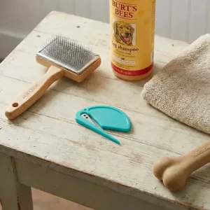 This compact brush easily fits in my pocket and quickly untangles my dog’s fur. It’s very gentle yet incredibly effective.