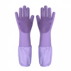 Strong silicone keeps skin dry and shields arms from water. No harsh chemicals touch your body during every wash.