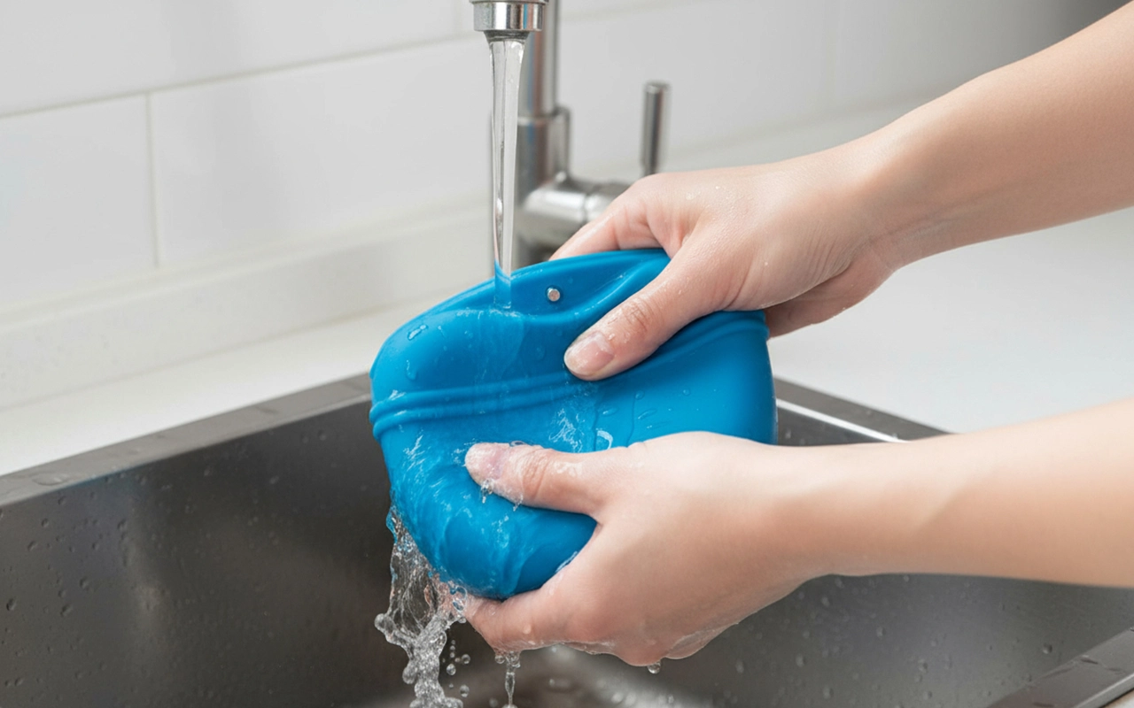 Washing takes seconds, so the pouch stays fresh and hygienic. Silicone flips inside out for thorough rinsing every use.