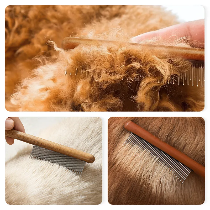 Enjoy a clean home while your furry friends stay happy. Primdog Cat Comb glides smoothly through fur and tackles tangles easily. The wooden handle fits perfectly in your hand for comfortable daily use. Say goodbye to fur clumps on furniture and clothing.