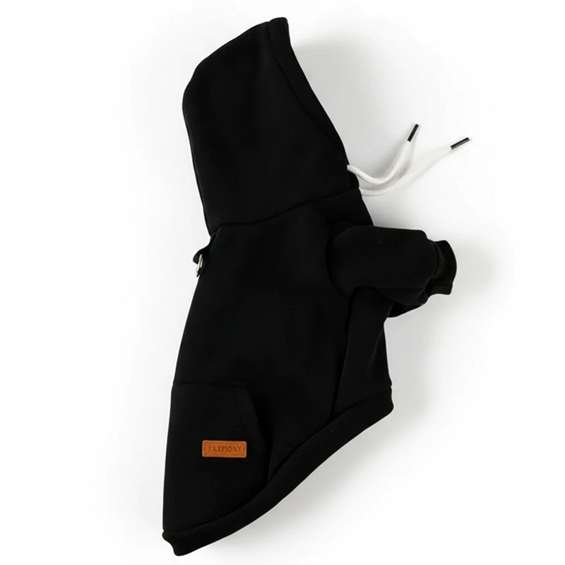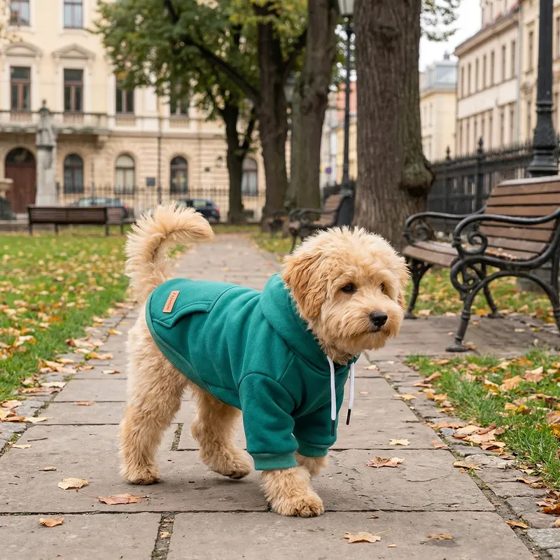 My dog loves this cozy hoodie! Keeps him warm on chilly mornings. The fleece inside is super soft and he runs around freely without any trouble.
