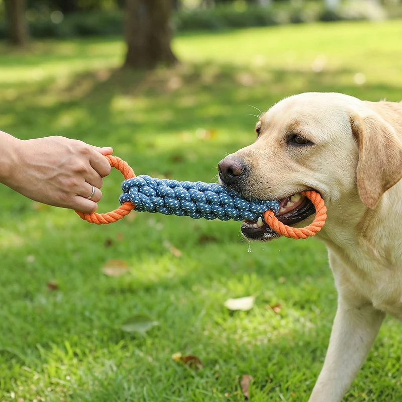 The rope is really strong and stands up to lots of pulling. My dog’s teeth look cleaner, and she seems to enjoy playing more now.