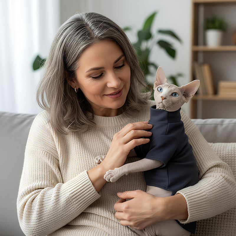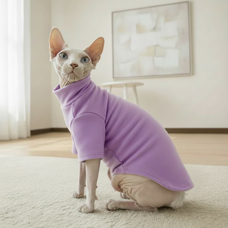 My cat wears this when it’s cold and stays smoke-free indoors. The gentle cotton helps with her sensitive skin.