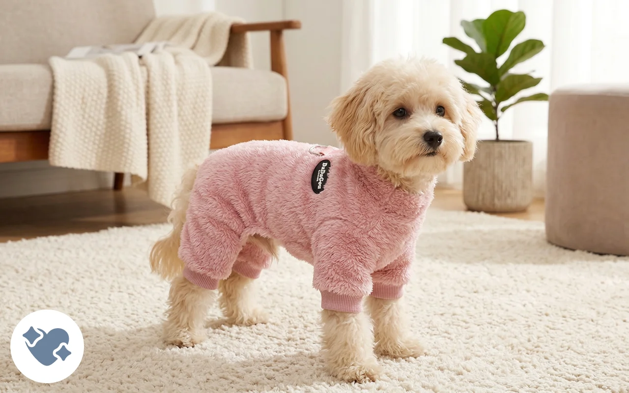 This onesie keeps my dog mix surprisingly warm after grooming. It doesn’t twist around, and the fleece still feels smooth after many washes, showing real durability.