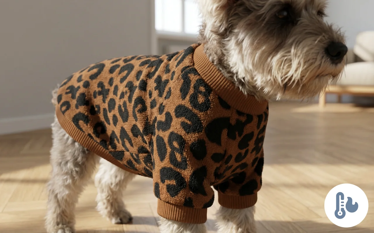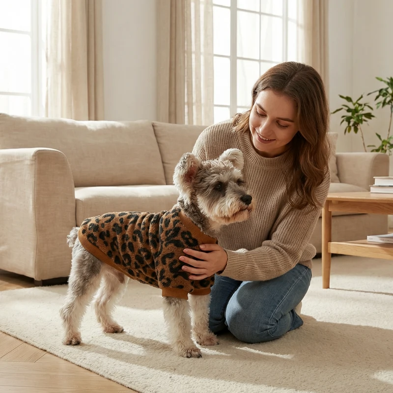 Couldn’t be happier with this jumper for my dog! No more shivering during walks. The leopard print always gets compliments from our neighbors.