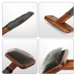 I like that it’s made of real wood instead of plastic. The bristles are gentle, so my spaniel isn’t scared to get brushed now. Big fan.
